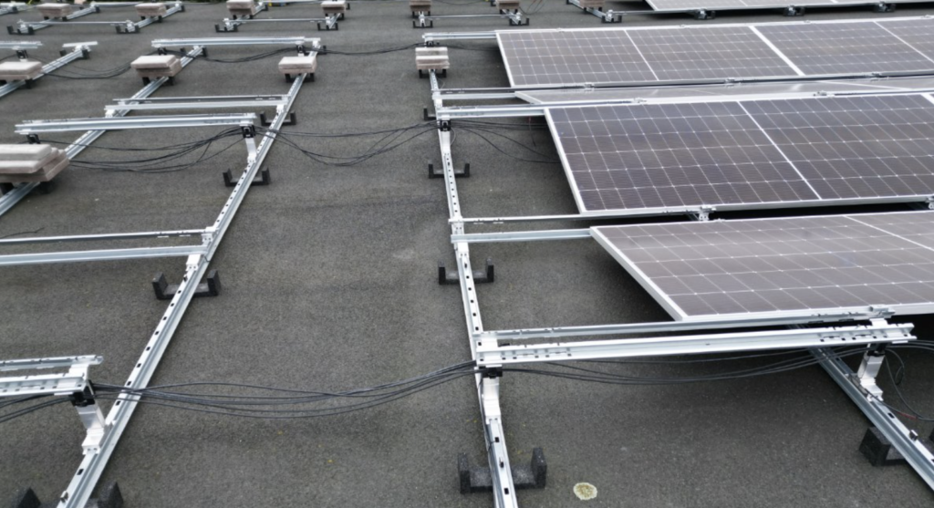Le système ValkPro+ est spécialement conçu pour les installations photovoltaïques sur toitures plates en environnement professionnel. Il offre une structure optimisée pour une pose rapide, sécurisée et sans percement de la membrane d’étanchéité.